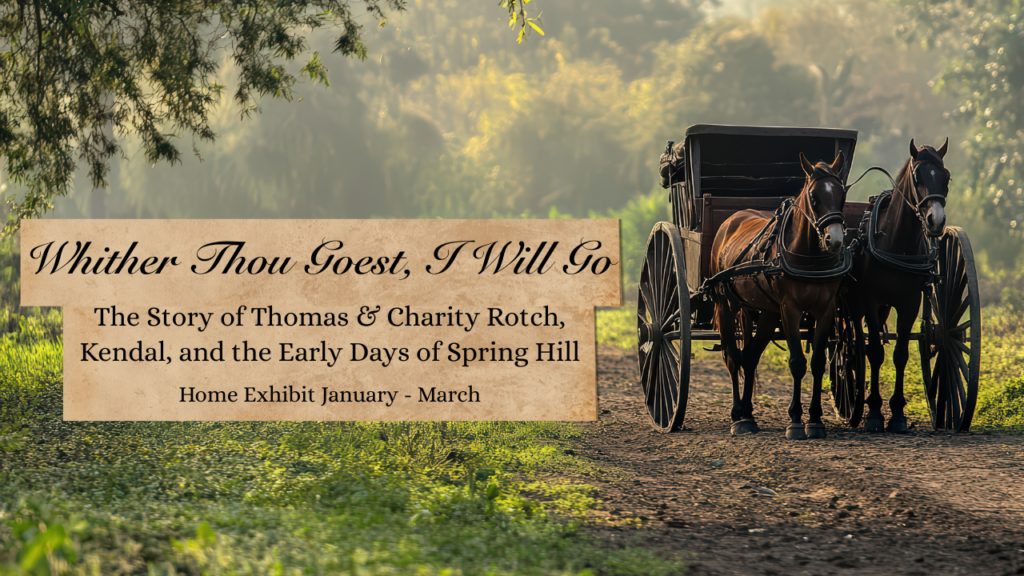 Launching the new year, Spring Hill is delighted to present a special winter exhibit “Whither Thou Goest, I Will Go.” Displayed throughout the rooms of the historic 1821 farmhouse, this exhibit tells the compelling story of Thomas and Charity Rotch, their journey to Ohio, the establishment of Kendal, and the early days of Spring Hill. It will focus on a partnership defined by devotion, resilience, and shared purpose during a formative period in American history. The exhibit is on display now through March 31st – schedule a tour now and don’t miss this opportunity!
