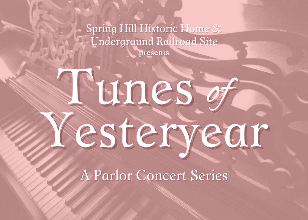 Tunes of Yesteryear – Sit back and relax in the Spring Hill Parlor to hear area musicians and singers perform music from the late Victorian era to the Jazz Age.